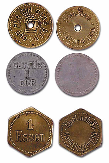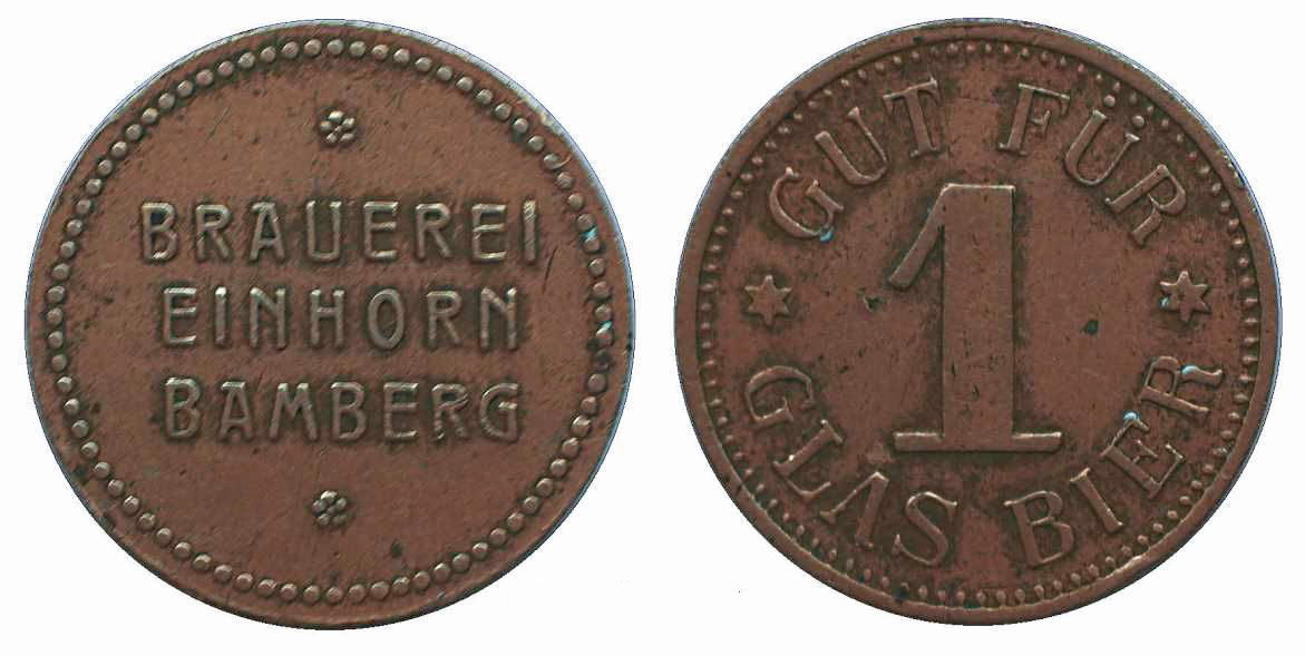 Seit wann es Biermarken gibt und wer sie eingeführt hat, ist unbekannt. Die älteste Biermarke, die der Münzsammler Herr Ankenbauer aus Schweinfurt kennt, stammt aus dem Jahre 1876.