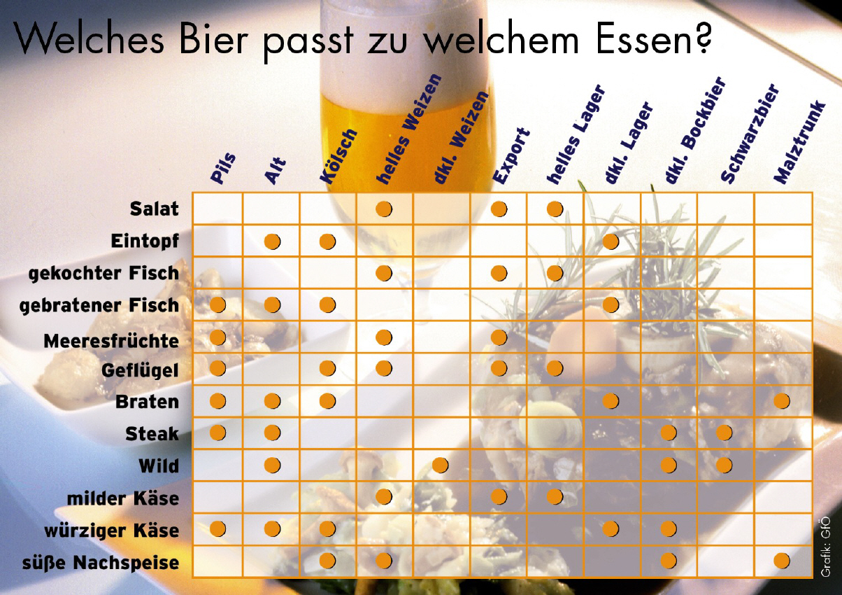 Dass zu einem schönen Braten ein frisch gezapftes Pils passt, weiß man. Aber was ist mit feineren Gerichten? Passt Bier zu Fisch, zu Wild oder gar zu süßen Nachspeisen? Und wenn ja, welches?
