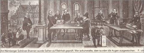 Die hiesigen "Pfeffersäcke" fanden nichts dabei, faules Fleisch an Nachbarstädte zu verkaufen. Wer ihnen jedoch gefälschte Gewürze andrehte, wurde verbrannt oder lebendig begraben. Wie drastisch die Nürnberger gegen Fälscher zu Werk gingen, verdeutlicht diese überlieferte Strafe: einem Safranfälscher hat der Rat beide Augen ausstechen lassen. Für Bäcker, deren Ware als zu leicht gewogen wurde, gab es den "Bäckergalgen", einen eisernen Käfig, in dem Bäcker zur Bestrafung unter Wasser getaucht wurde. Bierkontrollen sind seit 1150 aktenkundig: Die Prüfer gießen das Getränk auf einen Holzstuhl und setzen sich darauf – bleiben ihre Lederhosen nach einer Stunde kleben, reicht der Malzzucker im Bier aus. Das bayerische Reinheitsgebot von 1516 sieht dagegen nur vor, „böses“ Bier zu beschlagnahmen. Lange werden nämlich giftige Kräuter verwendet – und für Magenkrämpfe Hexen verantwortlich gemacht. Die letzte Brauhexe wird 1591 verbrannt. Reinheitsgebot hin oder her, das ganze Mittelalter über und noch bis ins 19. Jahrhundert hinein setzte man dem Gerstensaft zur Förderung der Heilkraft und zur Vorbeugung gegen Krankheiten allerlei Kräutlein zu: Wermut gegen Gallenprobleme, Salbei als Schutz vor Skorbut und Zahnweh, Beifuß gegen Frauenleiden, Rosmarin als Nervenstärker oder Lavendel fürs Rückenmark. Als geradezu lebensgefährlich stellten sich Zusätze von Sumpfporst oder Bilsenkraut heraus – im Volksmund "Rauschgras" und "Tollmännle" gebannt – die gang gäbe waren. Zuvörderst dienten beide der Haltbarmachung, aber letztlich dominierte ihre berauschende Wirkung.