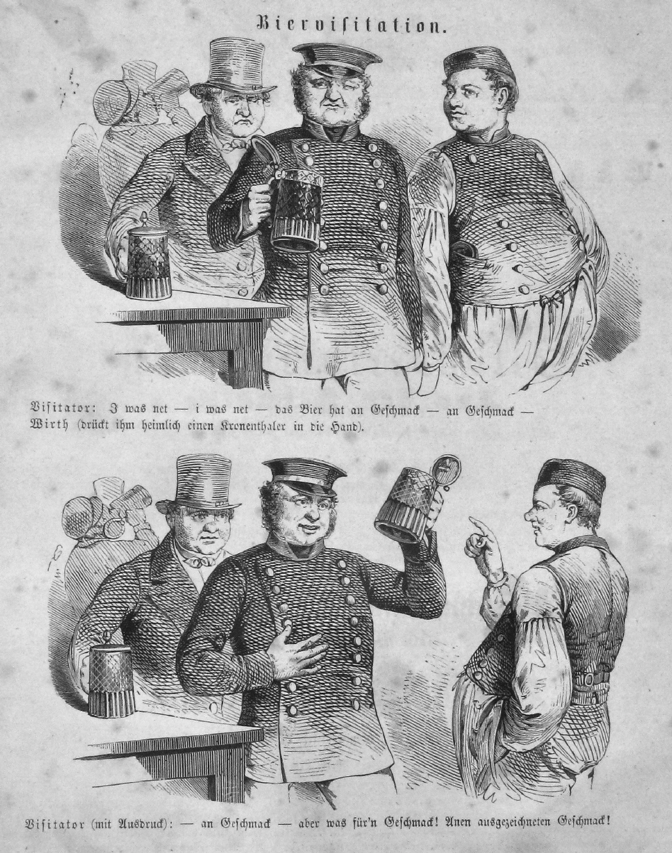 Wo Verordnungen entstehen, muss ihre Einhaltung überwacht werden, zumal "Bierpanscherei" früher nicht gerade selten war. Bis in die zweite Hälfte des 19. Jahrhunderts hatten "Bierkieser" oder "Bierbeschauer" ein Auge auf die Braukessel. Sie testeten sowohl die Reinheit als auch den Geschmack des Gebrauten.