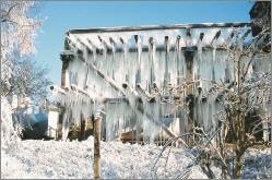 Eisgalgen dienten der Gewinnung von Eisstangen vor der Einführung künstlicher Kühlsysteme.
